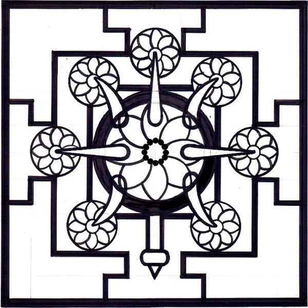 Mandala illustration originally conceived of and drawn by Indologist Dr Alexis Sanderson